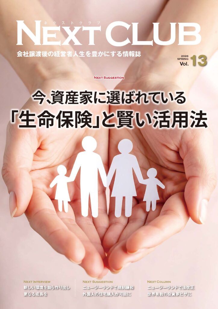 さて、この度はネクストクラブ会員(日本M&Aセンターで会社を譲渡された方)の皆様に会報誌『NEXT CLUB』春号を発行し、ご自宅までお送りさせていただきましたので、お知らせ致します。