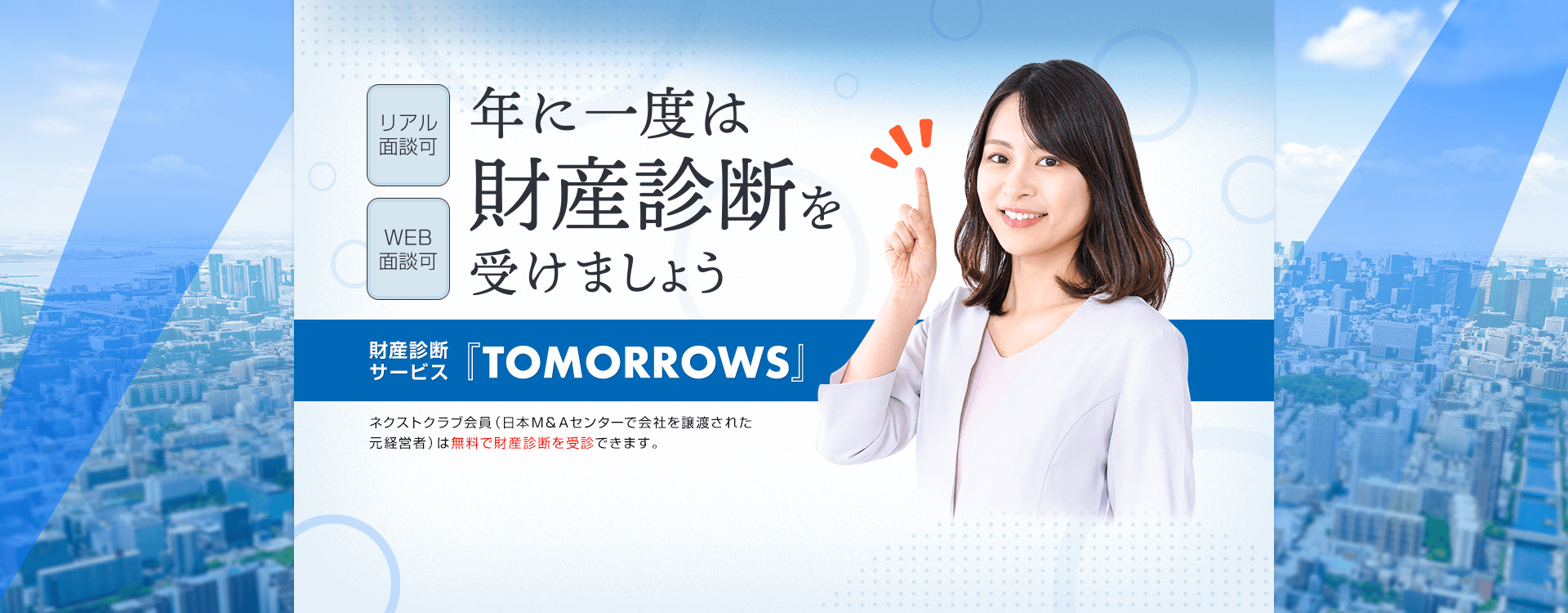 弊社の親会社である日本М&Aセンターで企業(事業)を譲渡された元オーナー様限定で、無料で各種サービスを提供いたします。М&A後の対価に係わる納税や今後の資金計画、ご家族への円滑な財産承継など、無料でご相談・解決策のご提示をいたします。そしてネクストステージでも輝かしい人生を歩んでほしい、そんな想いから財産に関すること以外のサービスも充実させて参ります。